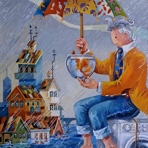 Massimo Maria Carpinteri, olio su tela cm. 30X60 (2025) IL RAGIONIER GUIDO E L’ACQUA CHE BAGNA LA TERRA SINOSSI:«Il contabile …
