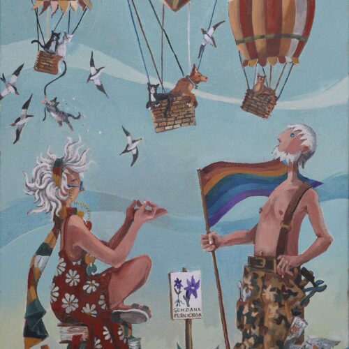 Massimo Maria Carpinteri, olio su tela cm. 30X60 (2025) L’ARDIMENTOSA E ROCAMBOLESCA CONQUISTA DI MONTE CòMPATRI SINOSSI:La audace e sognatrice …